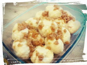 Szukając w internecie pomysłu na kaszę manną, znalazłam przepisy na knedle z kaszy manny. Stwierdziłam: "Czemu nie?". Akurat miałam ochotę na coś takiego kluskowego. Poza tym to bardzo fajny pomysł na wykorzystanie trochę może już zapomnianej kaszy manny. Oto przepis: